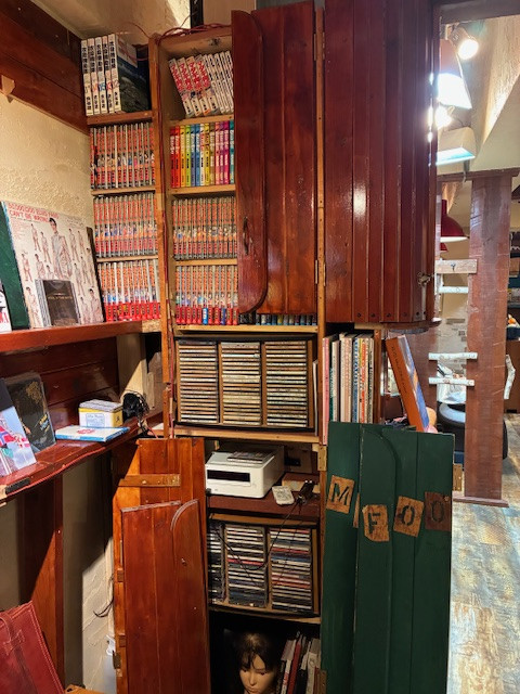 この本棚は、音楽ブースの右の壁として、今もなお、君臨しています。