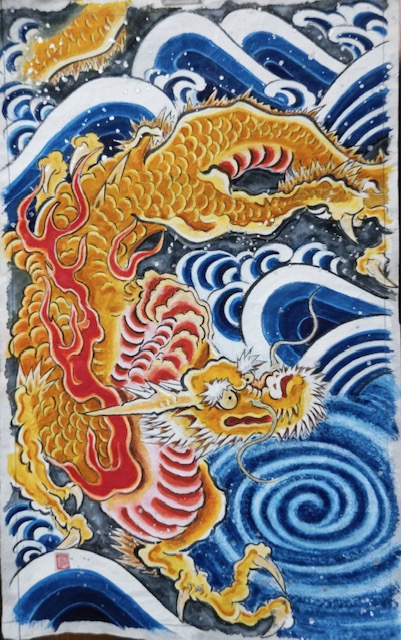 龍は、”水神”です、、この波、”浪波”と言うらしく、これが好きだったな~凧絵ならではって感じがしていました。
