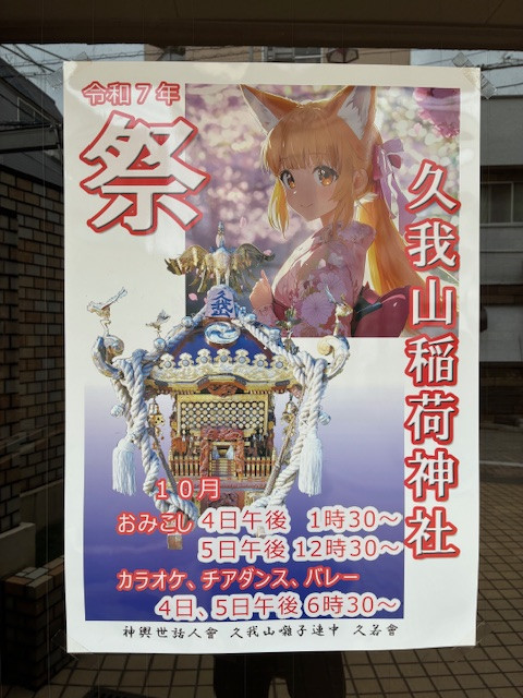 歩いてお店に来る道すがら、、この季節は、多くのところで”例大祭”なる神社のお祭りのポスターが張られています。