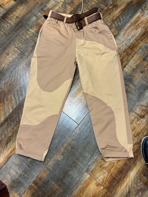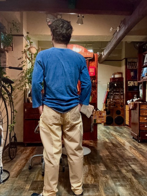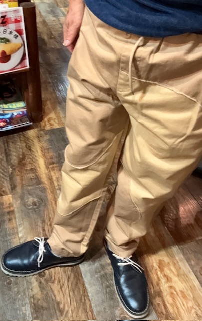 この切替のあるパンツ、デニム素材ではないんですが、、と言うのも、私、ヒッコリー、ウオバッシュ、ジーンズ、、デニム以外のパンツってほとんど持っていないんです、、ですから、、これは冒険、、、でもテイストは、なんとなく肌感としては、、”こんな感じかな~”は、あったわけです。切り替えがある分デニム素材にも見えなくもないですしね。