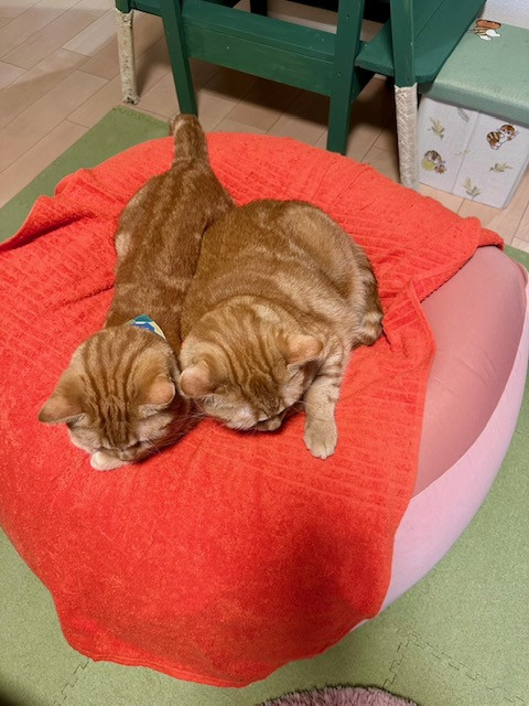 くっついているときが多くなったような気がして、もしかしたら寒い?敷いているのをタオルから、ポカポカする素材の物に昨日替えました。そうしたら