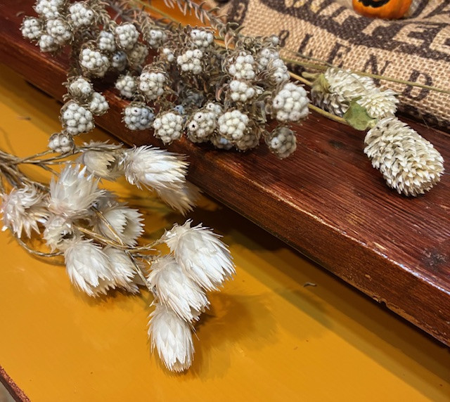 今回、和花さんに行ってドライフラワーを物色すると、、、気になったのは、白。。3種類の白いドライフラワーをチョイス。それを、怒涛の如く