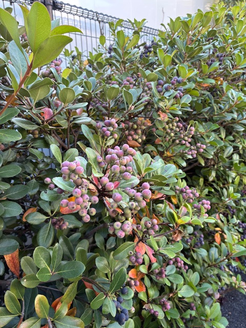 たわわに、”シャリンバイ”が実をつけ。さらには、この界隈では名の知れた寺町の妙寿寺のイチョウも