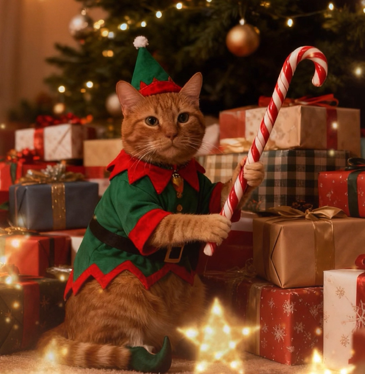 一足お先に、我が家のニャンコたちもクリスマスの雰囲気を出そうと写真にしました。来年のカレンダーのために撮りました。