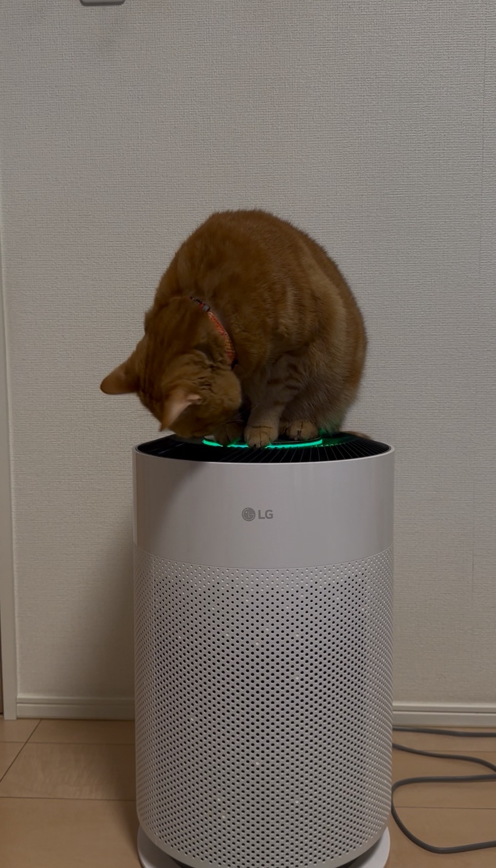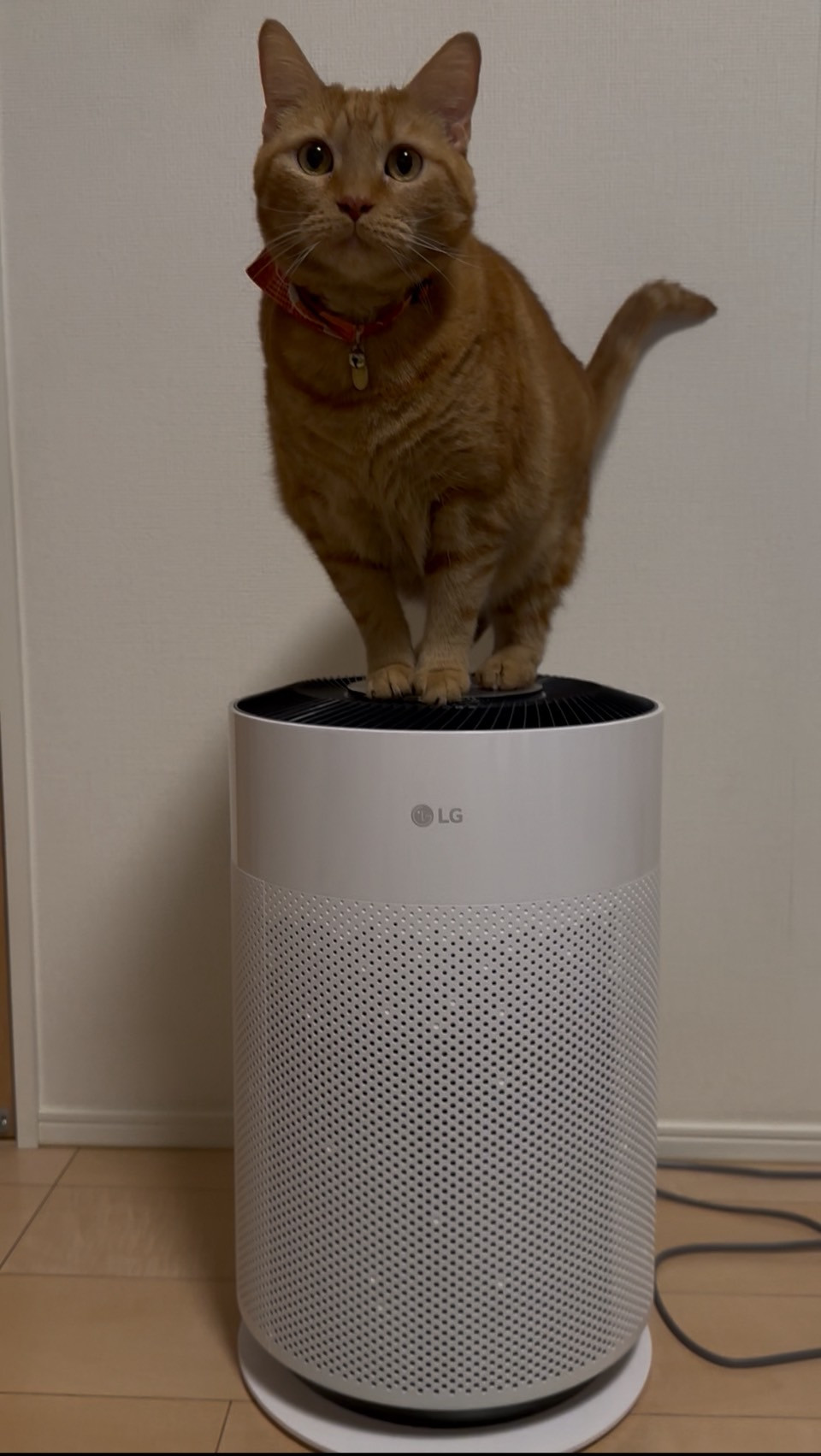 この上が気に入ったみたいです。しばらくして、下に降りると、、すごい勢いで、音を立てて清浄機が動きだしましたハハハ。