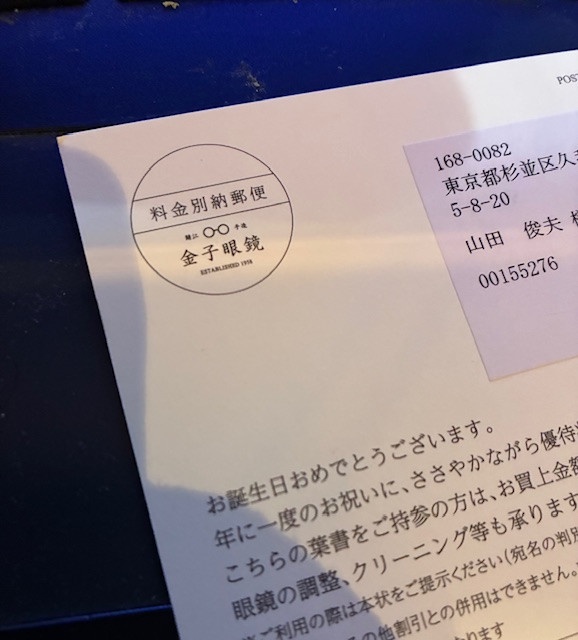 ここに必要なものが、、、切手です。様々なお店でDMを出していますよね、私ももらったりします、お店からのDMは先日も眼鏡屋さんからのハガキにしても、切手を貼るのではなく、”料金別納郵便”できますから、切手が必要ありません。