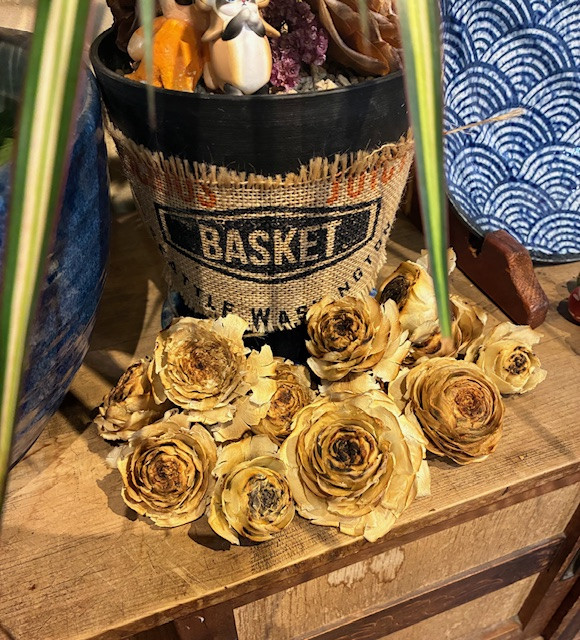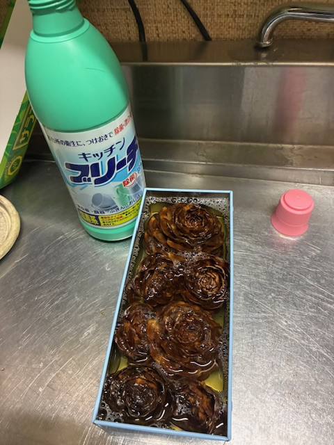 漂白には、時間がかかります大体半日、、すると、松笠は、水分を吸収すると開いていたのが、閉じてしまいます、、それを今一度乾燥させるには、天日干し、ですが、、さらに二日かかります。。
