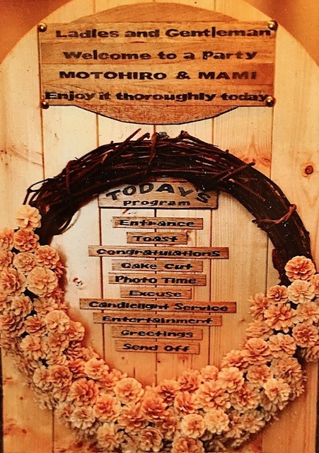 以前、お客様が結婚式を挙げる時にウエルカムボードとして松笠をふんだんに使って製作した時がありました。