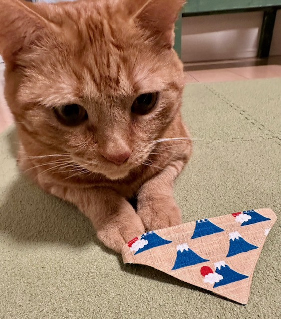 私も、我が家の茶太郎、虎太郎におめかし。新しいバンダナをプレゼントしました。