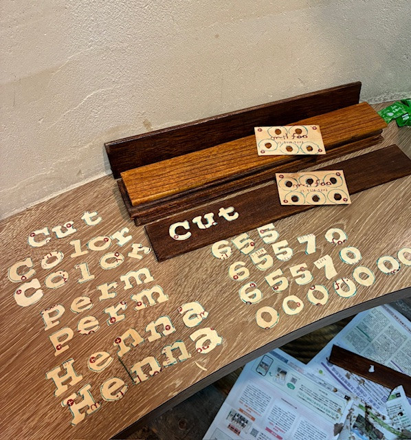今回は、プライス表の木材が、一部はがれてきていますから、新しくします。