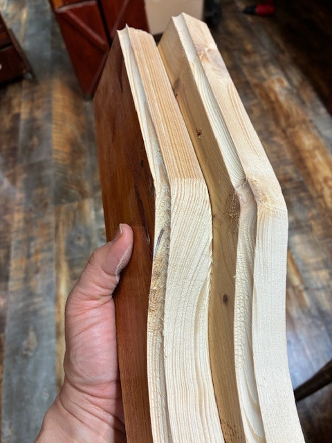 ジグゾ―(電動のこぎり)で曲線を描いて、トリマーで”角”を削り、、装着