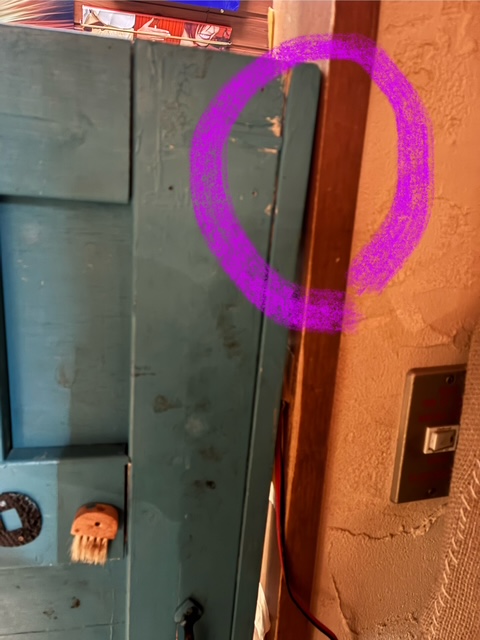 扉には必ず、”蝶番”と言うのが付いていて、それがあるから、開け閉めができるわけなんです。そのドアの部分が躯体側にぶつかってしまうわけです
