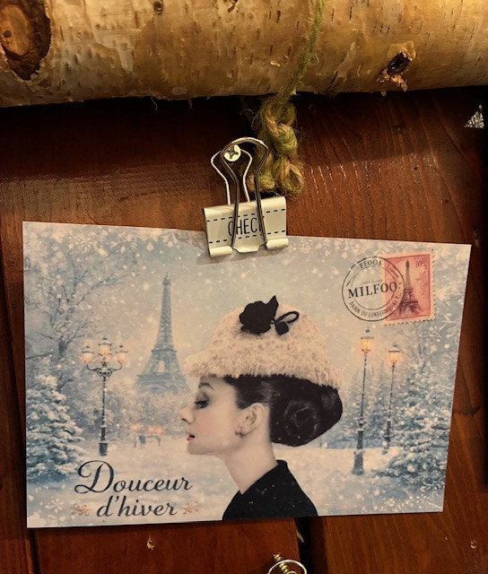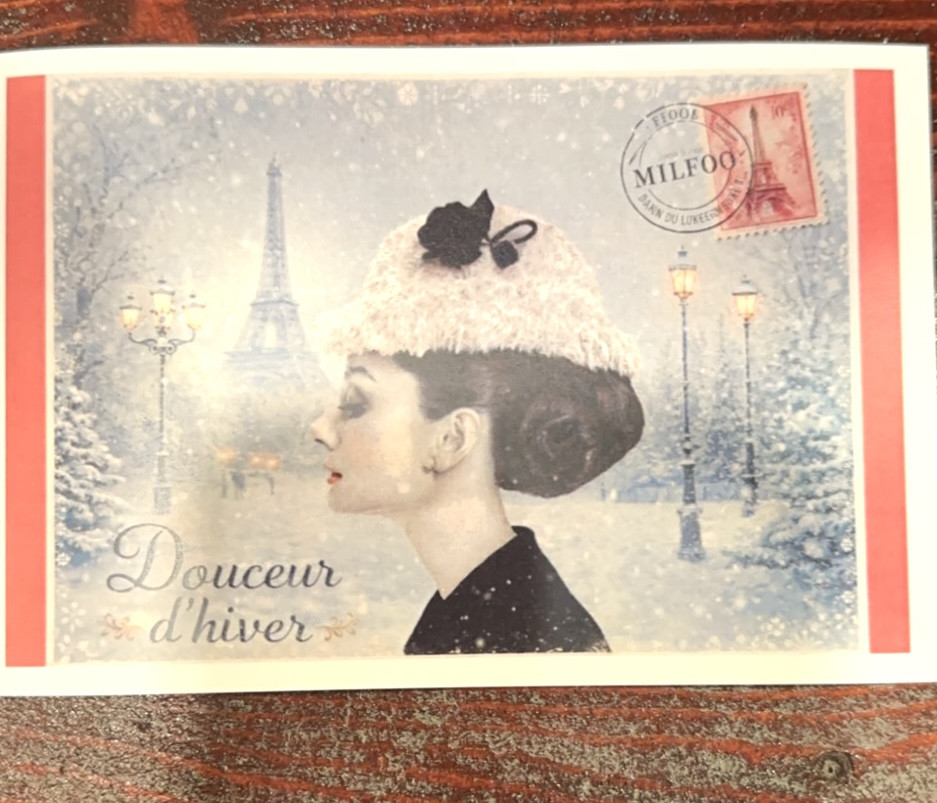 ある意味、このオードリーヘップバーンのポストカードを見ていると冬の気分が盛り上がる。。