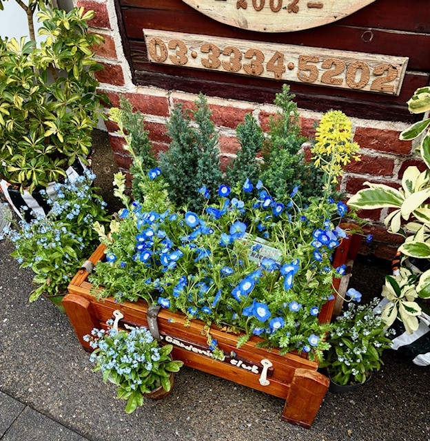 そう、ハボタンでしたそれにしても、背が低かったネモフィラが葉ボタンも隠し、、デイスプレイの本 よりも大きくなるなんて言うのには、驚きです、もう後ろにある、コニファーと背丈が同じです。