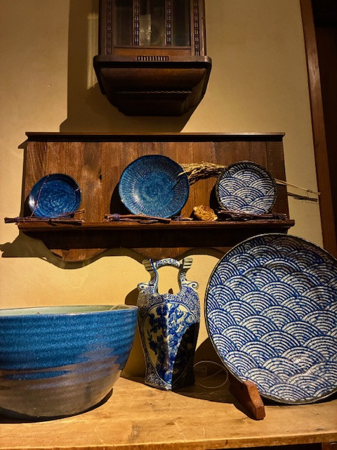 最近”器”にハマったお客様、、其れも藍色にハマって、、器をめでる楽しさに目覚めてしまった、金沢に行き九谷焼を買ってきた。。。