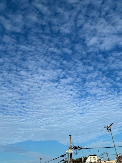 空が高い‼上を見ながら、ずっと歩いていたい、という気にさせます、、、それくらい気持ちのいい朝。秋になったんだな~って思いますよ。私は、そうそう飛行機には乗らないんですが、、丁度飛行機が写っているんですが、この雲が近くに観れるのは~素敵ですよね~,,下界も澄んで見えているのかな~。